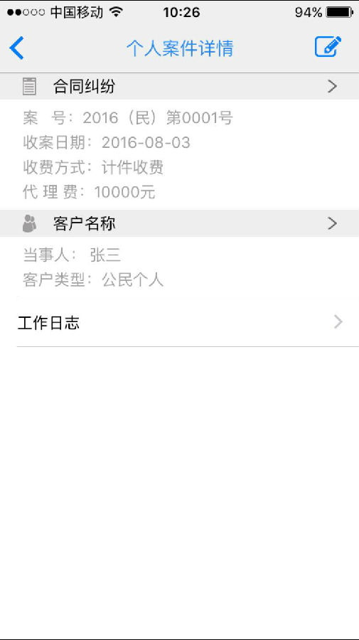 工作日志:可以分享給委托人,讓委托人隨時(shí)了解案件進(jìn)展