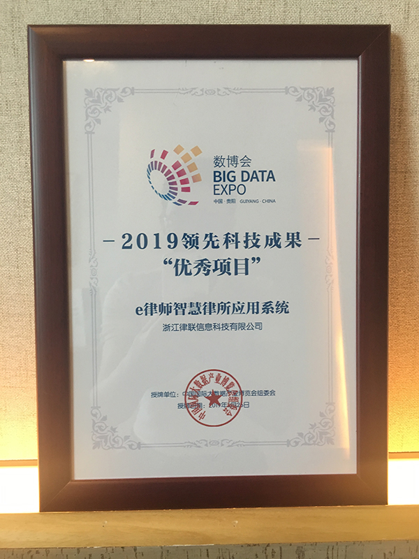 通過數博會開始真正的讓人們體驗到數字生活的魅力與科技感,并且邀請全球頂級大數據企業和大數據領軍人物同臺論道,深度探討大數據應用技術難點、需求痛點及解決方案。律聯科技也是為此而存在的,也因此才有了“e律師智慧律所管理系統”。我們非常榮幸的參與了本次盛會,也非常慶幸自己能夠為全球用戶解決痛點、改善大數據生態而貢獻綿薄之力,最后獲得大會的肯定榮獲“優秀項目”獎項,這一切都讓我們的付出變得真切而又有意義。