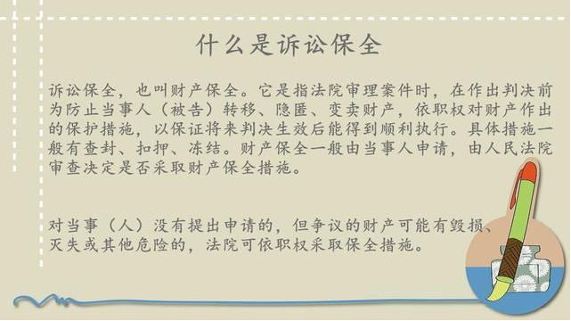 訴訟保全很多人不知道是什么概念,簡單的來講就是指人民法院在利害關系人起訴前或者當事人起訴后,為保障將來的生效判決能夠得到執行或者避免財產遭受損失,對當事人的財產或者爭議的標的物,采取限制當事人處分的強制措施。